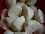 泥つきのまま 上下を切り落として タテに皮むくのがコツ。